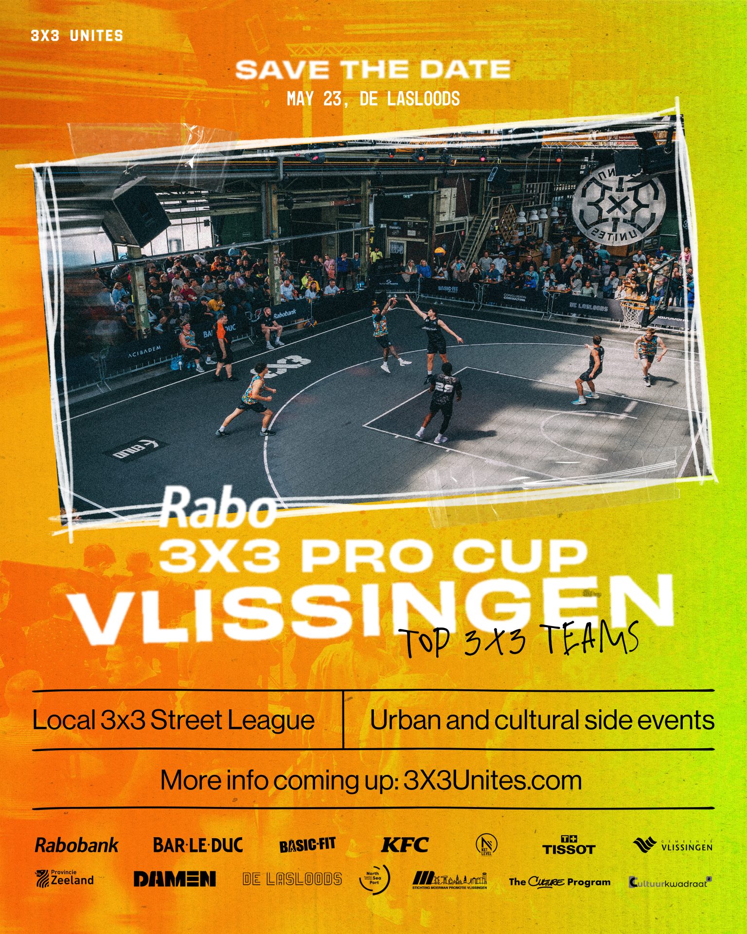 Beleef topsport van dichtbij tijdens de 3×3 Basketball Pro Cup in De Lasloods! Internationale teams strijden in een snelle en spectaculaire variant van basketbal. Naast de wedstrijden is er volop actie en entertainment met een spectaculaire BMX-demo, zelf BMX rijden, live muziek van DJ Vindictive & DJ Native en graffiti. Kom langs, geniet van de sfeer en mis het niet! 🏀🎧