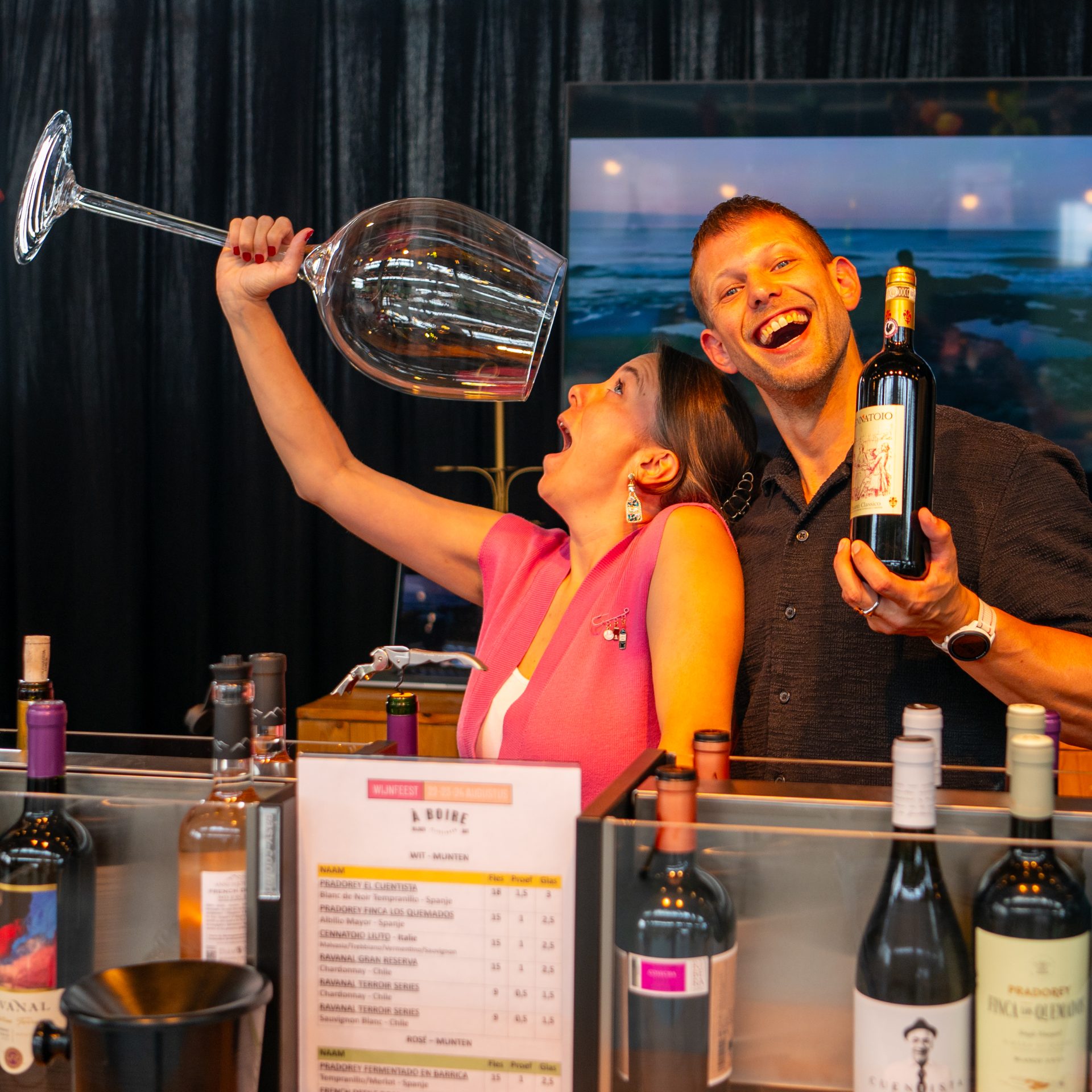 À Boire Wijnen – Reinoud en Anna’s vaste recept? Een aanstekelijke sfeer, gecombineerd met een gevarieerd aanbod van wijnen — van kleine Europese wijnhuizen tot een honderd jaar oud wijnhuis uit Chili, en zelfs de écht lekkere wijn van een BN’er.